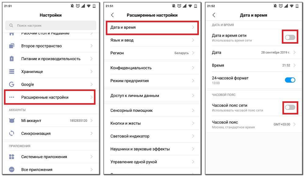 Как показывает практика, системную ошибку нередко провоцирует выставленная настройка синхронизации времени с сетью. Из этого можно сделать вывод, что ручная установка текущей даты и часового пояса исправит проблему. Сделать это правильно поможет пошаговая инструкция, представленная далее: