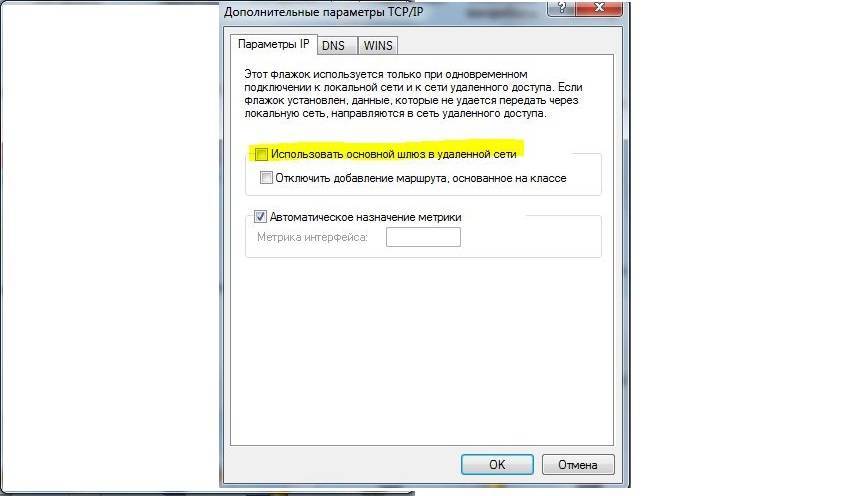 Не использовать основной шлюз