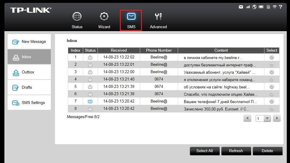 TP-Link M5350 — управление сообщениями, пришедшими на сим карту