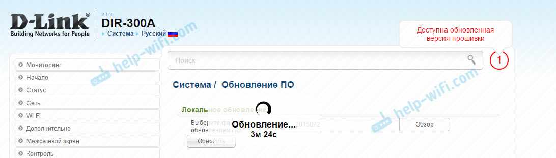 Обновите ПО, следуя подсказкам программы. Выполнив необходимые действия, будет установлена хоть и не последняя, но вполне рабочая прошивка D-Link DIR-300 C1.