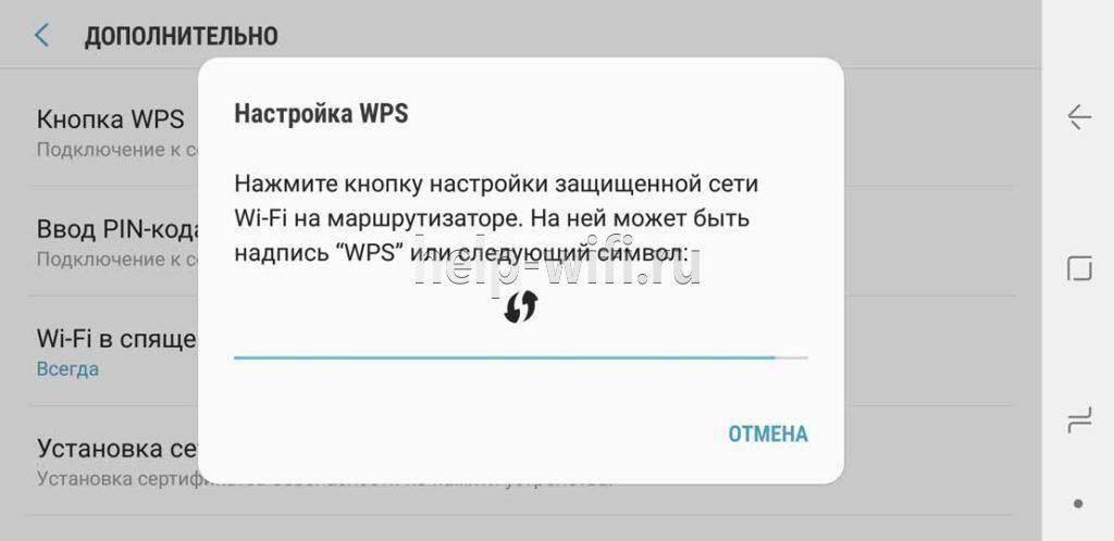 Подключение WPS на Android-устройстве осуществляется аналогично.
