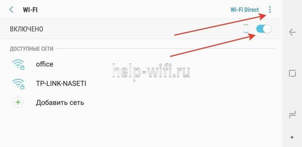 Например, при использовании смартфона Samsung Galaxy S8, нужно зайти в настройки и там выбрать пункт “Подключения”. Выбираем пункт Wi-Fi. Проверяем, что Wi-Fi включен. После этого жмем на символ из трех точек и выбираем “Дополнительно”.