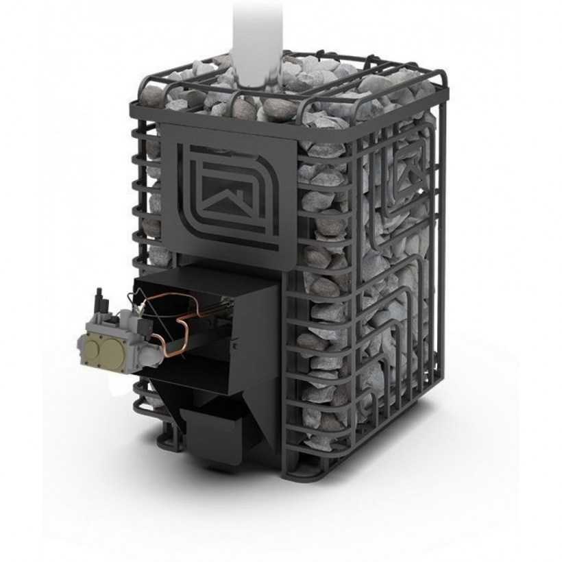 Для работы, комбинированной газодровяной печи для бани, внутрь топки монтируют ГГУ (газогорелочное устройство). Обязательно применение блока автоматики, регулирующего подачу газа и отключающее ГГУ при затухании пламени.