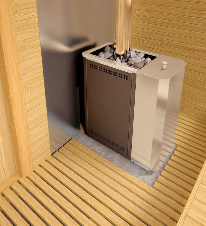 ТЭНы закрыты от проникновения влаги, благодаря чему можно лить воду прямо поверх камней для регуляции количества пара без боязни испортить прибор.