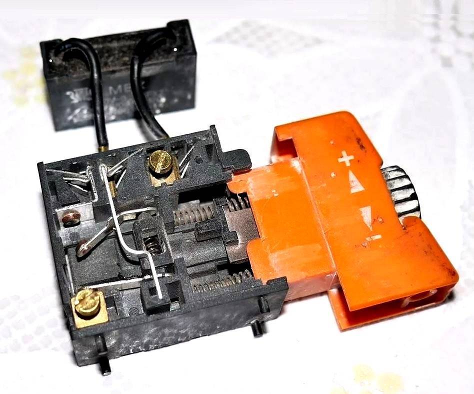 Еще один популярный вид поломки – это неисправная работа кнопки-выключателя, обыкновенно отвечающей и за регулирование скорости вращения. На первом этапе проводится проверка, есть напряжение. В случае его отсутствия кнопка снимается и осматривается на предмет, не залипли ли или не подгорели ли контакты.