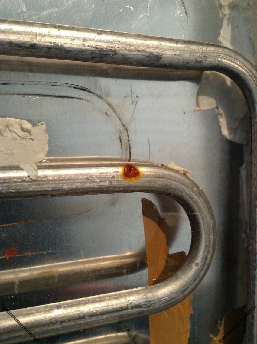 - Ржавчину с трубок устраняют обработкой специальным средством или 9%-ным уксусом. Перед обработкой следует проверить действие на небольшом участке, только потом применяя на всей окисленной поверхности.