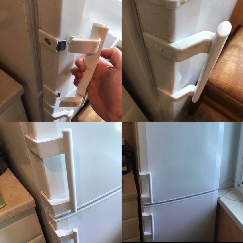 При этом необходимо соблюдать осторожность, особенно на старых холодильниках, поскольку со временем пластик защелок становится хрупким