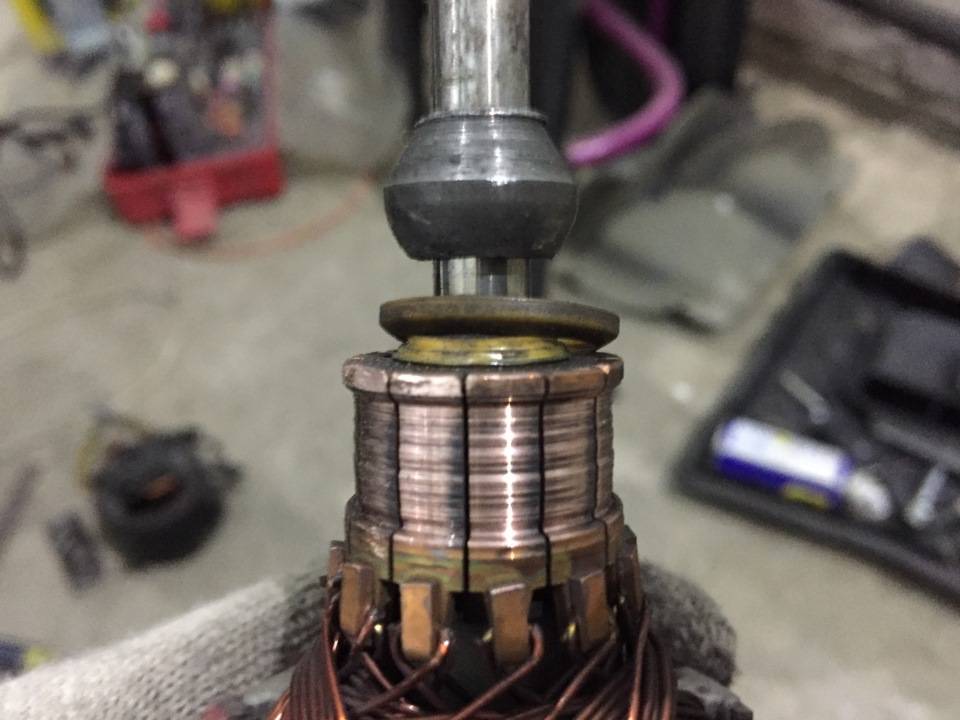 Подшипник так плотно сидел из-за загустевшей смазки на валу ротора двигателя, что пришлось снимать его проворачивания плоскогубцами.