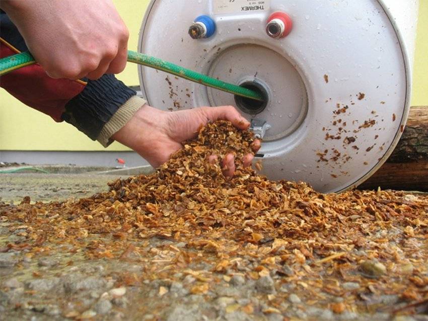 Ремонт бойлера включает добрую часть грязной работы. Заливая и сливая воду через горловину несколько раз, нужно удалить весь крупный мусор. Затем оценить, насколько плохо состояние бака, есть ли следы глубокой коррозии.