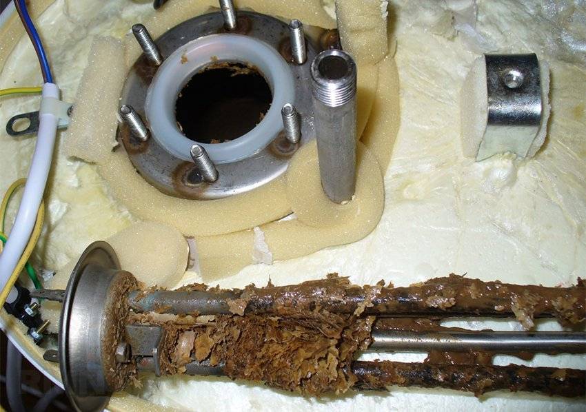 - большой слой накипи на ТЭНе и внутренней поверхности бойлера.