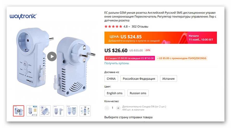 На сайте AliExpress доступен огромный выбор GSM розеток по доступной цене. Перед покупкой такого оборудования изучите функционал и отдавайте предпочтение моделям с опцией SMS и возможностью применения в России. Много полезной информации можно почерпнуть в отзывах пользователей.