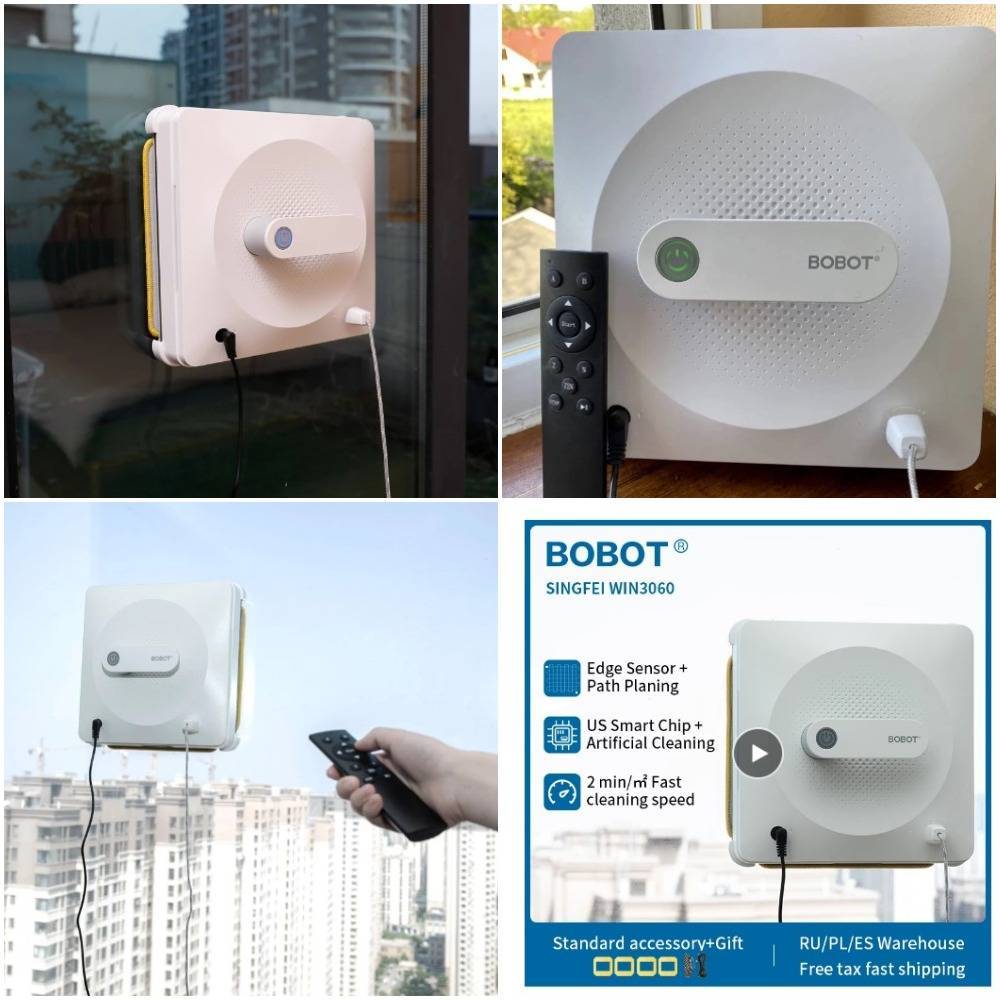 Классический стеклоочиститель Xiaomi Bobot win3060 от китайской компании, стоимостью 20 тыс. руб. Робот укомплектован квадратной микрофиброй, гусеничной ходовой частью и электромотором, создающим между мойщиком и стеклом разрежение силой до 2500 Па. Очистка поверхности выполняется в одном из трех режимов с обратно-поступательными проездами, имитирующими движения человеческой руки. Скорость работы стандартная – 1 кв.м./2 мин. В отличие от предыдущей модели, в Xiaomi управление реализовано как с пульта, так и через смартфон. Питание осуществляется от сети через провод. Радиус работы ограничен длиной страховочного троса (4 метра).