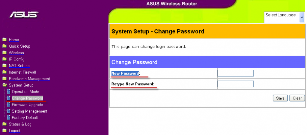 Вторым немаловажным делом будет установка нового пароля. Переходим в System Setup, затем нажимаем на Change Password и два раза вводим новый пароль, который необходимо запомнить.