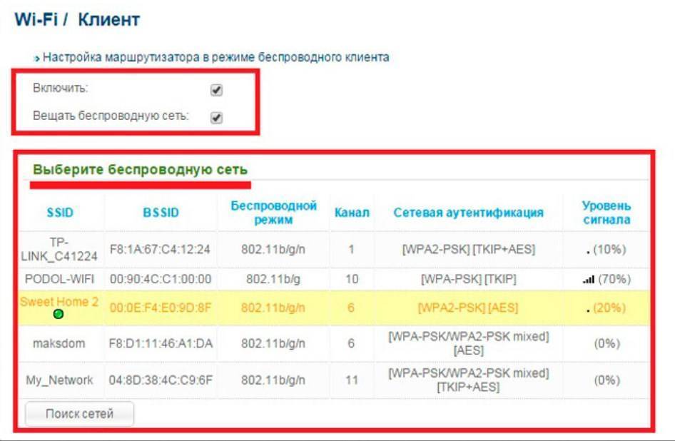 В настройках достаточно активировать необходимый режим работы, выбрать сеть, которую нужно усилить, и все готово.