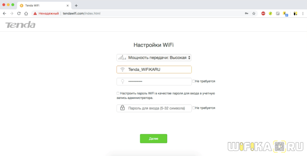 Жмем кнопку «Далее» и переходим к настройке wifi сети.