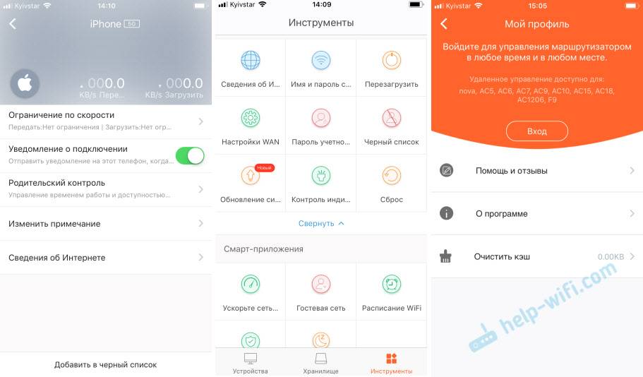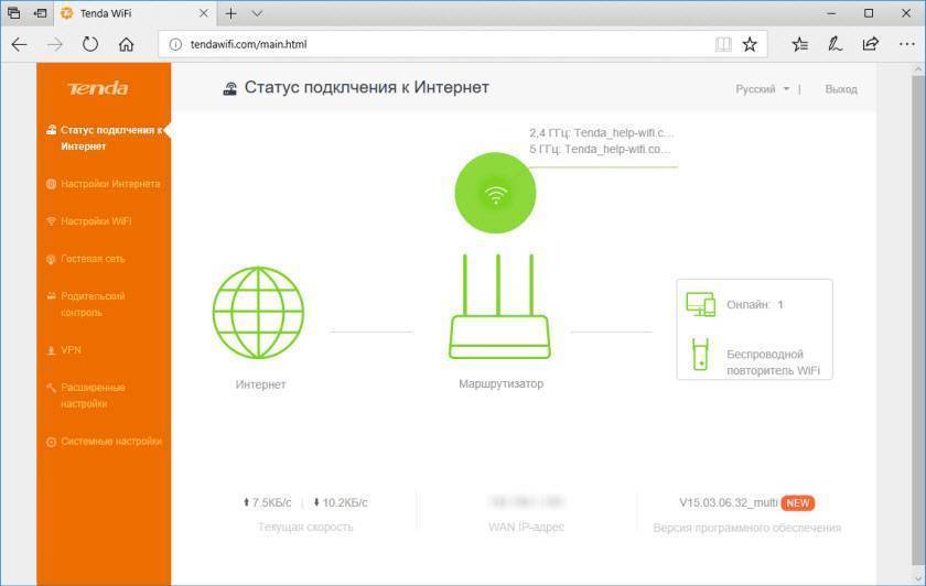 Управлять Tenda F9 с помощью приложения можно только при работе устройства в режиме маршрутизатора. Доступны все те же настройки, что и в веб-интерфейсе роутера.