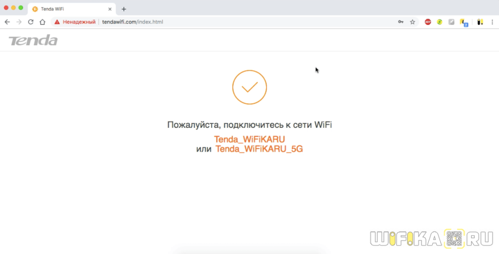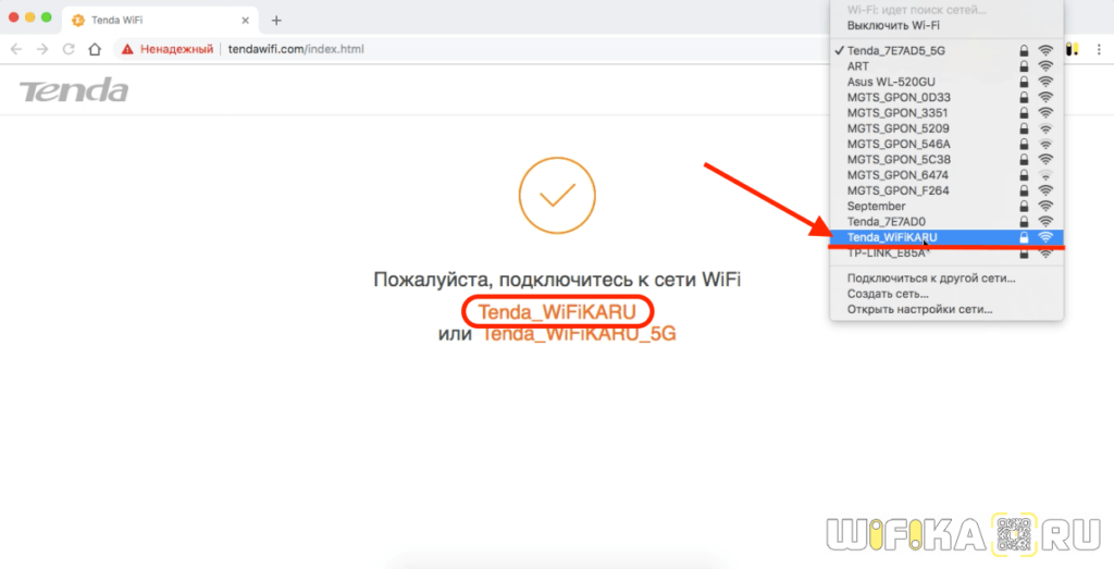 Для продолжения работы нужно снова подключиться к сети Tenda, но уже с новым названием, которое мы ей дали.