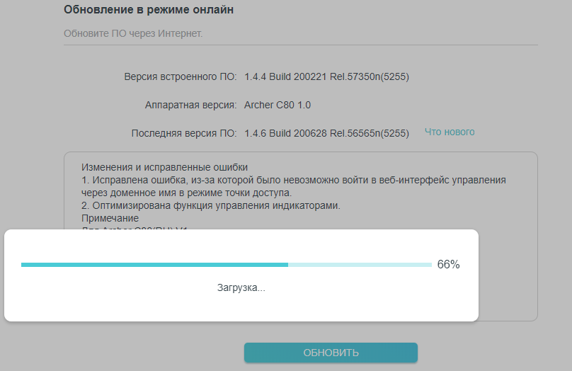 Перед началом тестирования версия встроенного ПО была обновлена с 1.4.4 до 1.4.6 через настройки в Web-интерфейсе. Процедура занимает около 2 минут и не требует сторонних вмешательств.