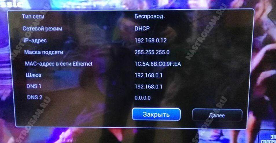Если пароль на Вай-Фай был введён верно — Вы увидите сообщение, что подключение телевизора к роутеру прошло успешно! Нажимаем кнопку «Закрыть».