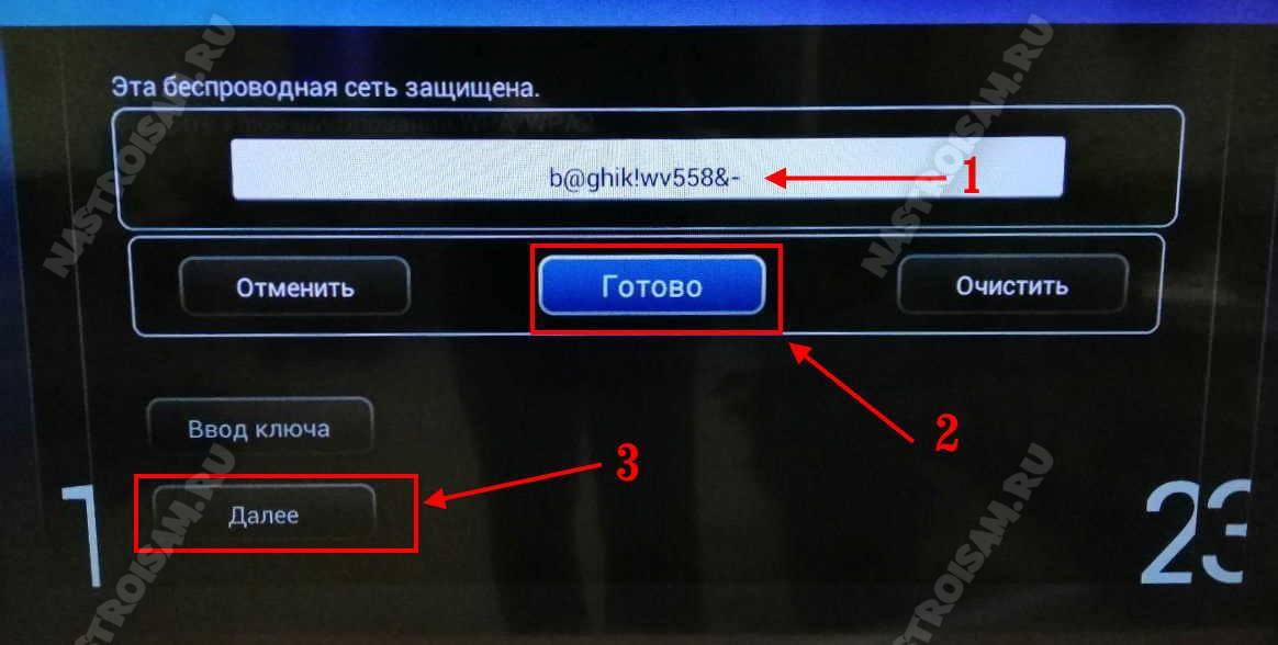 Здесь с помощью экранной клавиатуры вводим сетевое имя для ТВ и нажимаем кнопку «Готово».