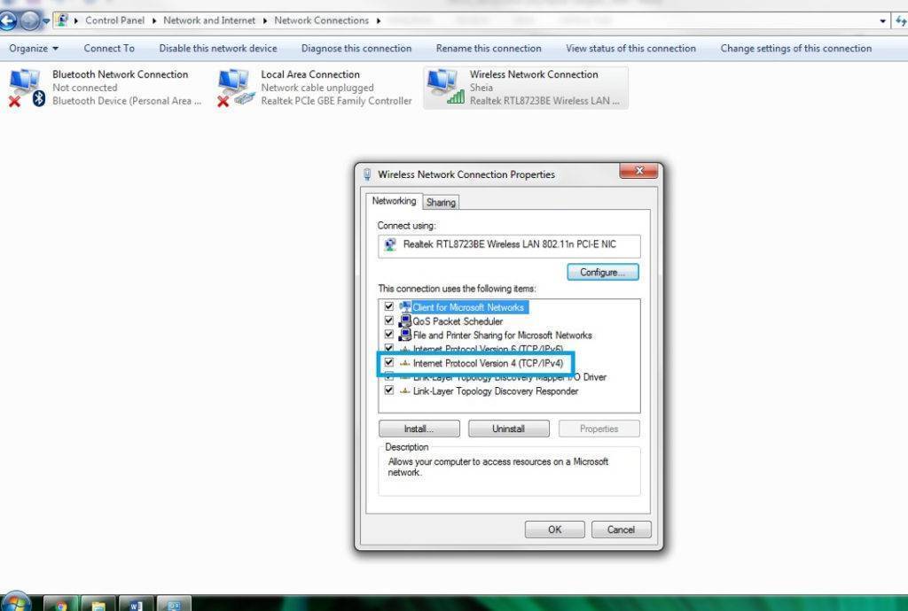 Проверьте чтобы стояла галочка напротив протокола «IP версии 4 (TCP/IPv4)». А вот протокол версии 6 можно и отключить. После этого зайдите в свойства протокола IP версии 4 (TCP/IPv4).
