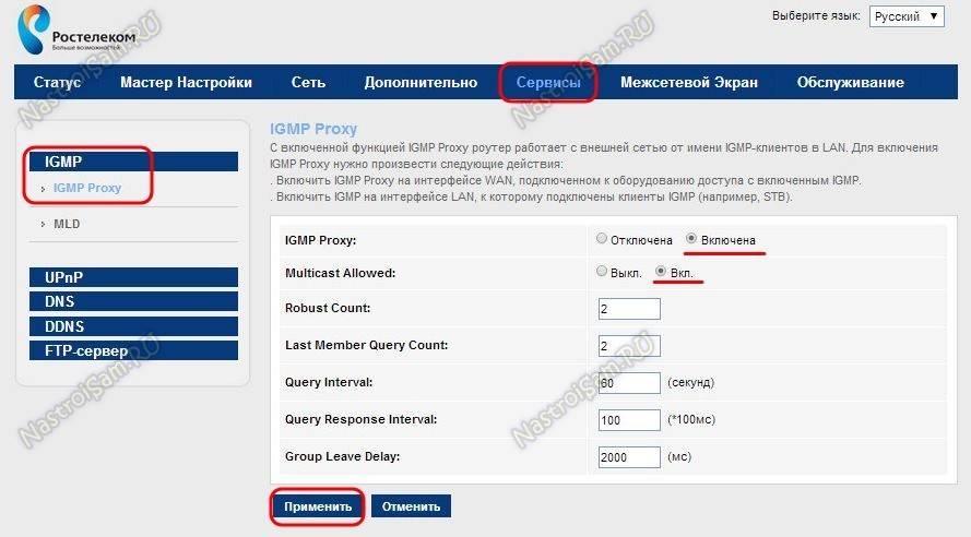 Переходим в раздел «Сервисы»-> «IGMP Proxy»: