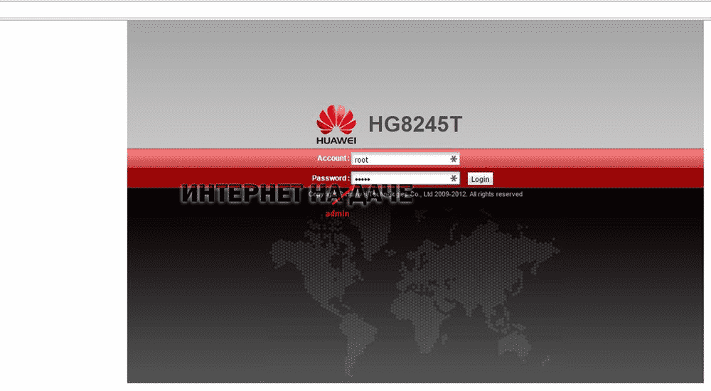 Логин/пароль для авторизации в модемах и терминалах Huawei HG8245H и других похожих моделях: