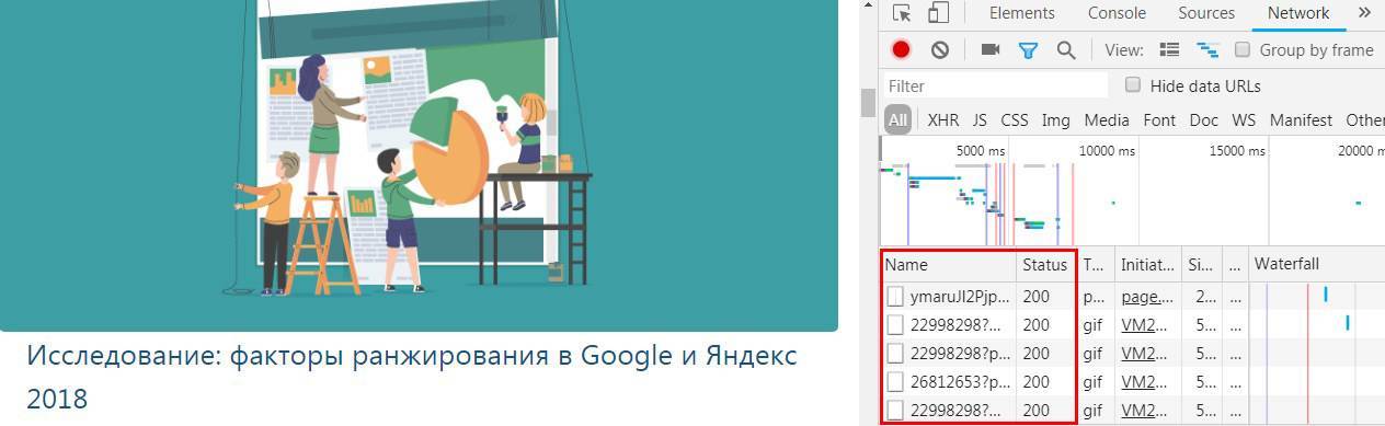 Посмотреть код ответа на странице можно бесплатно за пару кликов. В браузере информация находится на панели разработчика: в Google Chrome для вызовите панель горячей клавишей F12, откройте вкладку Network и обновите страницу.