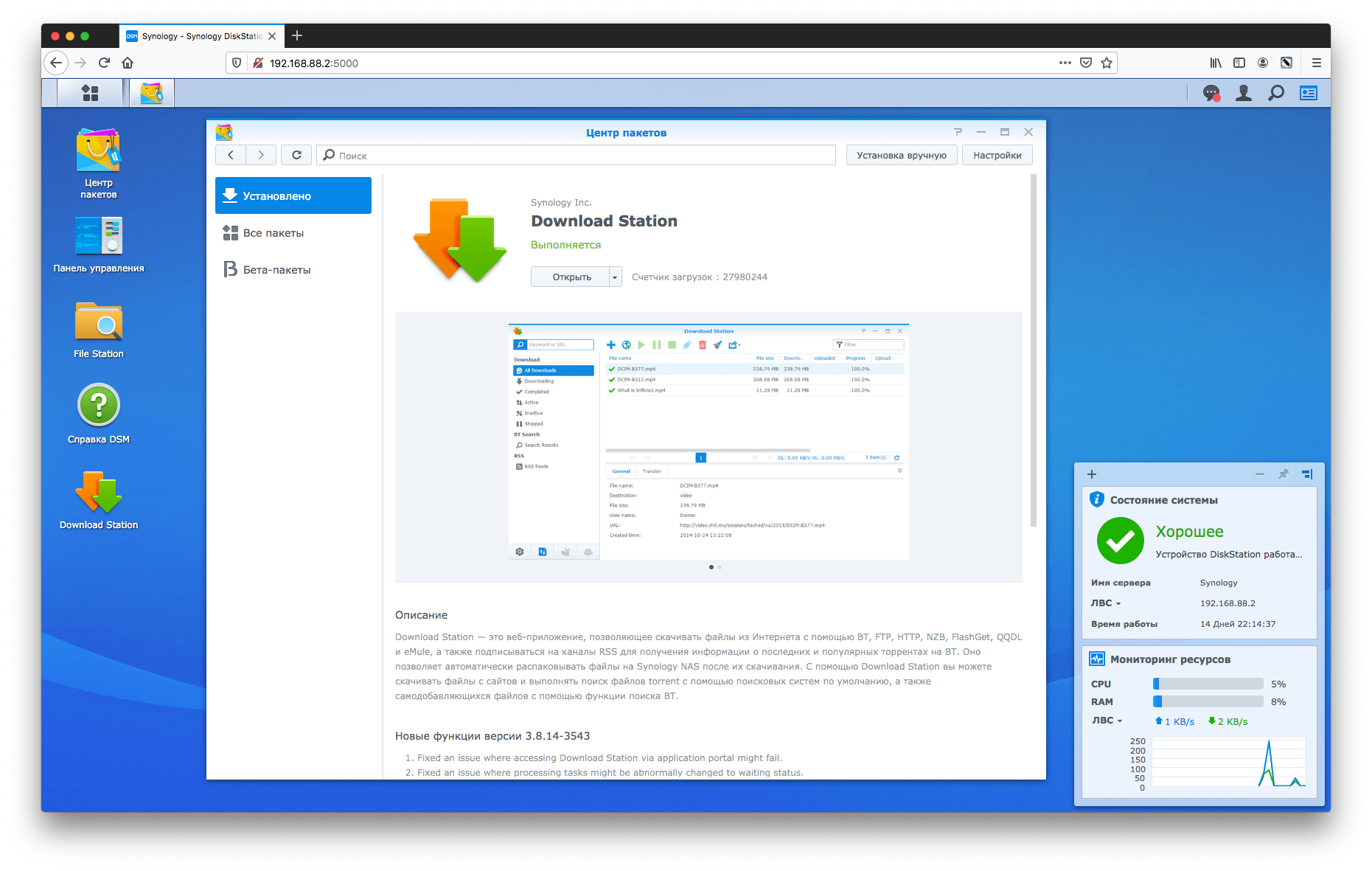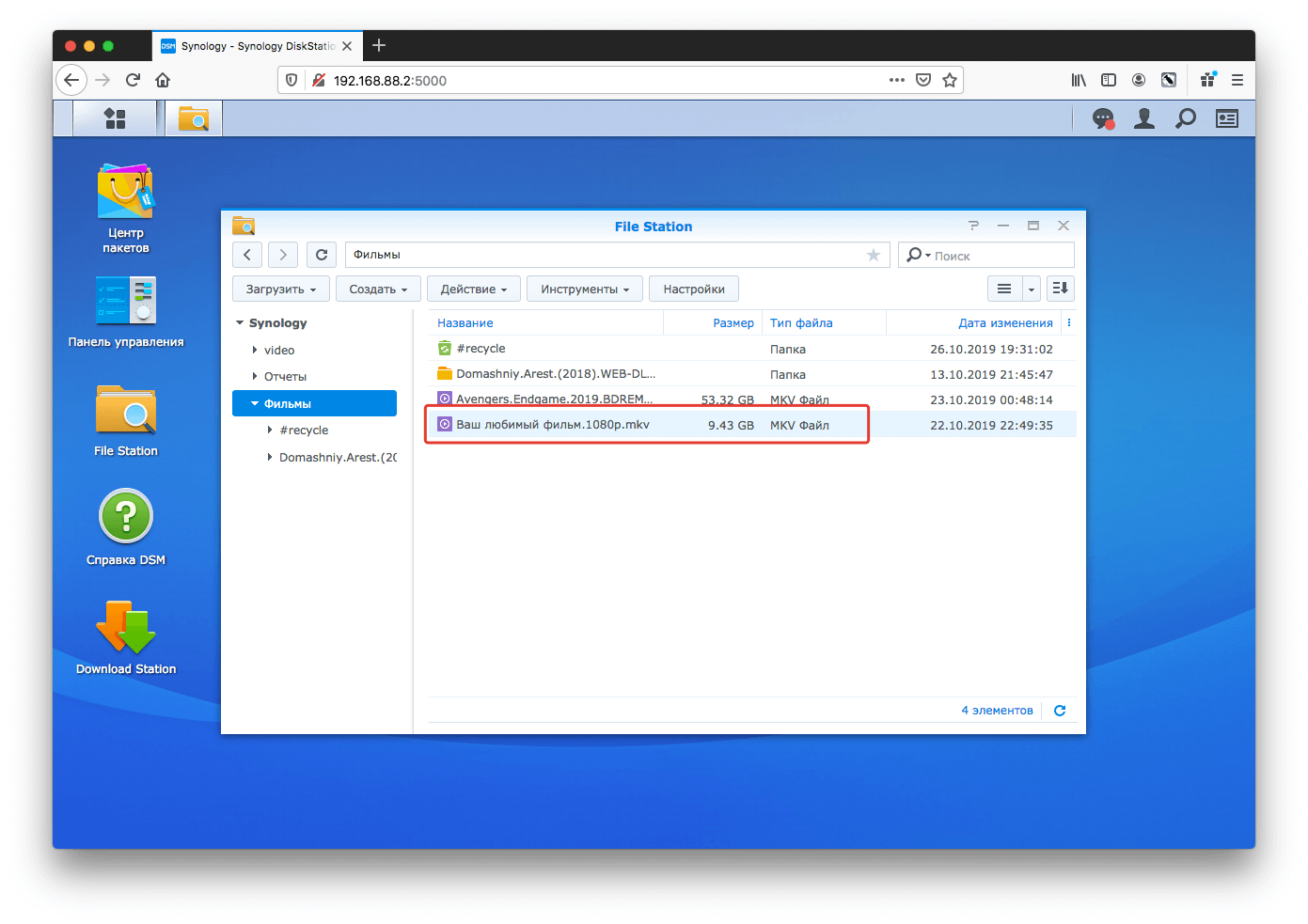 С помощью Download Station качаем фильм, сериал или любой видео ролик на наш NAS: