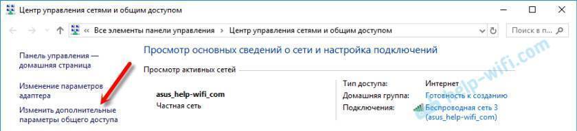 - Нажмите на кнопку «Изменить дополнительные параметры общего доступа».