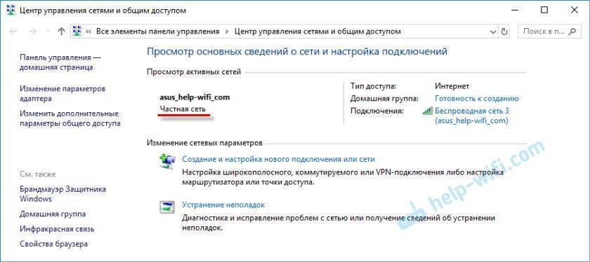Дальше, на всех компьютерах (не знаю, сколько их там у вас), желательно присвоить статус сети “Домашняя” (частная). Как это сделать в Windows 10, я писал в статье домашняя (частная) и общественная (общедоступная) сеть Windows 10. В Windows 7 достаточно зайти в “Центр управления сетями и общим доступом” и сменить там статус текущего подключения.
