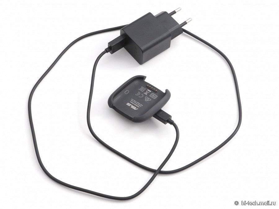Часы заряжаются при помощи небольшой подставки, выполненной из прорезиненного пластика. На фоне самих аккуратных и отлично собранных ZenWatch эта подставка с неровно подогнанными швами смотрится очень странно. Стоило бы уделить больше внимания качеству подгонки деталей аксессуара, пусть он и выполняет вспомогательную роль. Часы плотно фиксируются в пластике, вынуть их можно, приложив значительное усилие. Для зарядки, которая длится около 1,5 часов, используется microUSB-кабель, тут все стандартно.