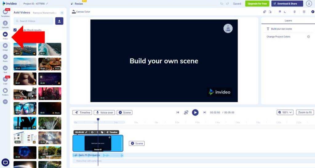 Загрузите свой музыкальный трек или используйте из библиотеки InVideo.