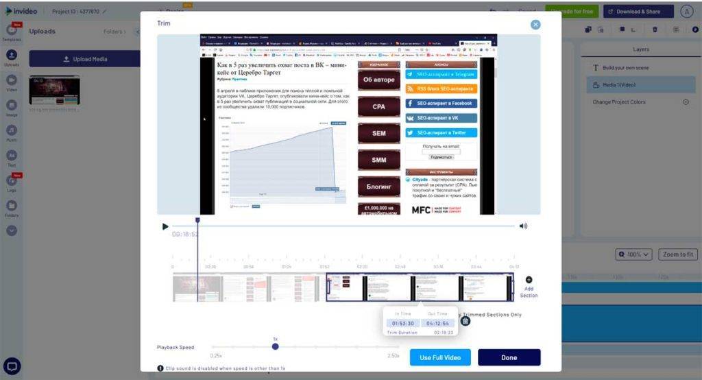 InVideo – это комфортный редактор для новичков, которые ожидают быстрых результатов. При этом у него широкий функционал и, соответственно, возможности для работы.
