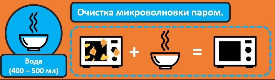 - Для удаления с покрытия следов засохших жирных капель или остатков еды необходимо взять глубокую емкость и налить в нее воды, добавить дольки лимона или лайма. Кислота быстрее выведет загрязнения. Емкость помещают в камеру, закрывают дверцы и включают микроволновку на пару минут, повернув регулятор на полную мощность. После того как стекло запотеет, выжидают, пока вода остынет в течение 15 мин, затем открывают дверцы и протирают с помощью губки скопившуюся в процессе эксплуатации грязь.