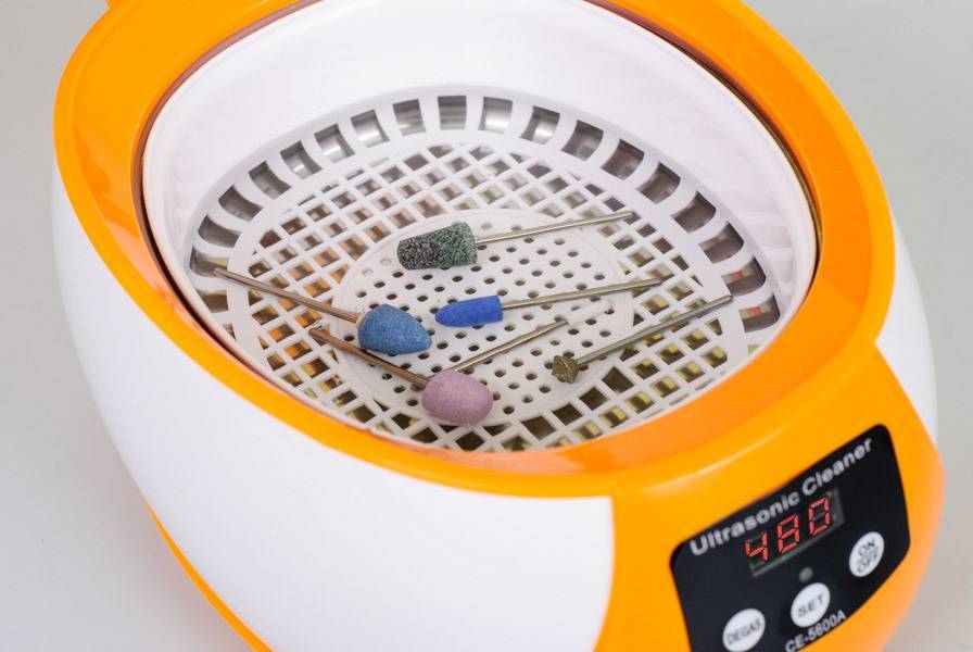 Ультразвуковой стерилизатор подойдёт для маникюрных и парикмахерских инструментов, а также украшений. Ультразвуковая волна проходит через раствор в контейнере, увеличивая диэлектрическое давление, что создаёт микровакуумные пузырьки. Их распад очищает объект от грязи, ржавчины, вредных бактерий и микроорганизмов. При этом он не повреждает даже керамические, пластиковые и стеклянные инструменты.