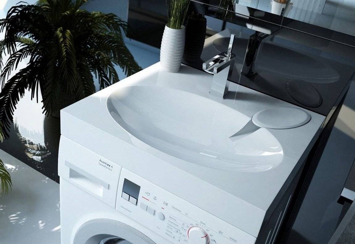 Раковина над стиральной машиной со смещенным назад сливным отверстием