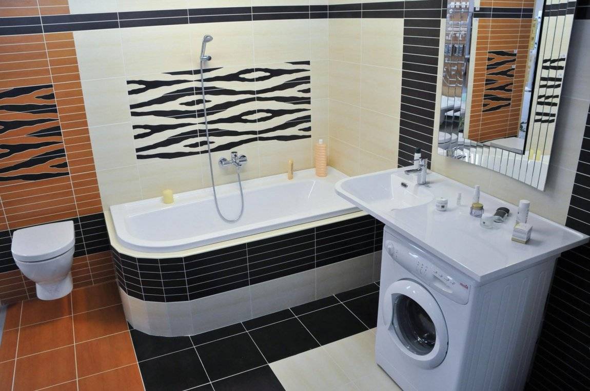 Раковина, объединенная со стиральной машинкой в один функциональный элемент интерьера, уже сама по себе считается оригинальной и нестандартной идеей. И этот вариант используется не только в ванных комнатах, но и на кухнях. В кулинарной зоне технику дополнительно маскируют фасадом гарнитура. Из-за возрастающей популярности симбиоза раковины и стиральной машинки, не так давно на рынок начали поступать специальные модели агрегатов для стирки, к которым уже прикреплена чаша рукомойника. В некоторых вариациях они дополняются узким боковым шкафчиком для размещения бытовой химии. Чтобы «комплект» органично влился в интерьер ванной комнаты, стиральную машинку устанавливают в открытой «тумбе», верх которой венчает столешница с накладной раковиной. Сам элемент меблировки покрывают кафелем в тон керамической плитке, которой отделана зона душевой кабинки или ванны. Некоторые дизайнеры в стремлении подчеркнуть эту особенность оформления даже создают «дорожку» на полу помещения. Ее выполняют из керамической плитки другого цвета (отличного от оттенка кафеля, использованного в остальной отделке пола), которая словно «ведет» человека от входа к стиральной машинке и раковине.