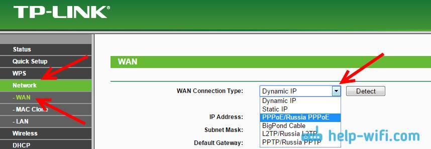 TP-Link TL WR741ND поддерживает несколько типов соединения с интернетом