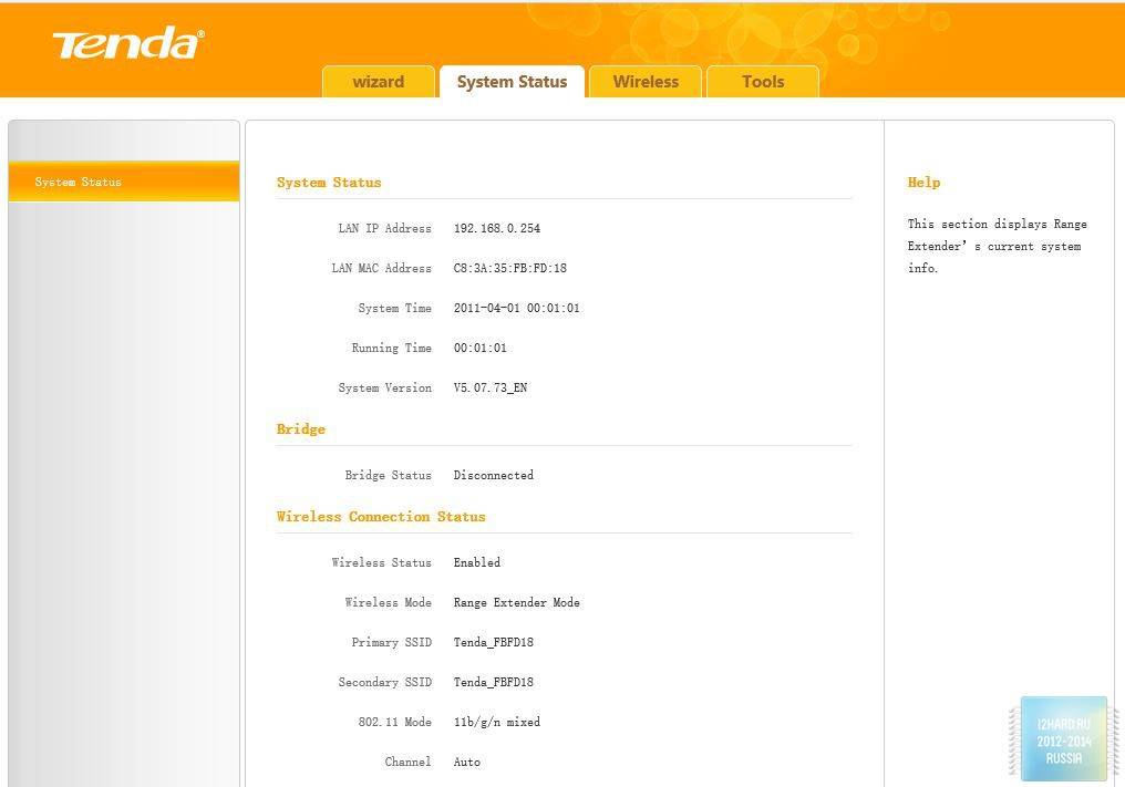 - Настройки по умолчанию: Доступ по умолчанию: http://re.tendacn.com; Пароль входа: admin