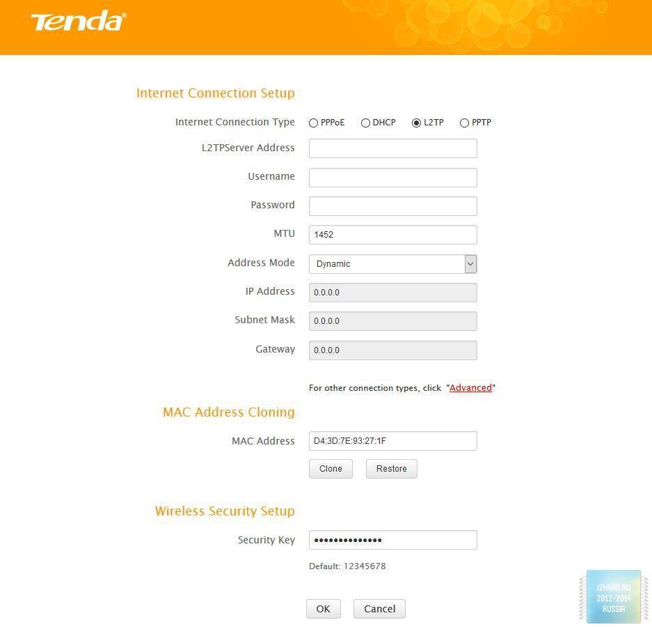Такая же самая настройка роутера Tenda N301 для L2TP. Отличается лишь еще двумя важными полями: