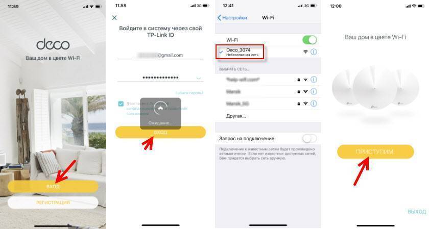 Запускам приложение Deco. Если у вас уже есть аккаунт TP-Link ID, то нажмите на кнопку “Вход” и войдите в него. Если нет, то нажмите на кнопку “Регистрация” и создайте аккаунт. После чего выполните вход в приложении.