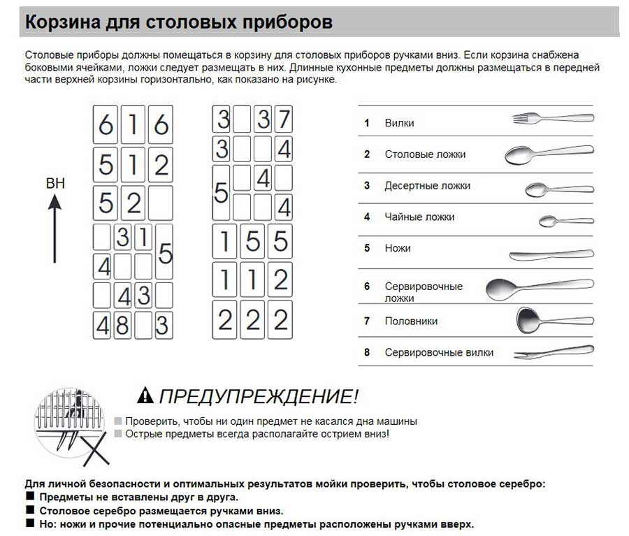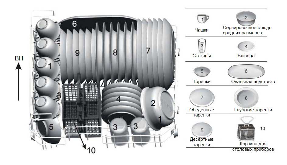 Для начала уберите остатки пищи с предметов, после чего сложите ее в ПММ. Старайтесь укладывать посуду максимально компактно, чтобы она не мешала работе оборудования.