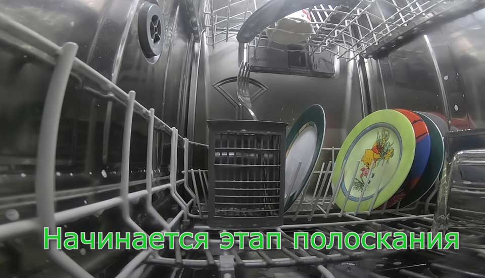 Когда работает ополаскиватель, он наделяет поверхность кухонной утвари свойством не удерживать на себе влагу