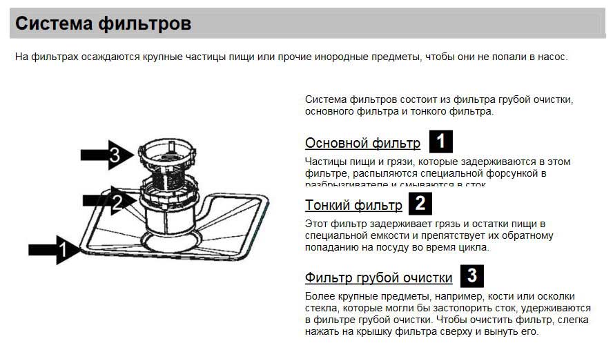 Посудомойки оснащаются самоочищающимися фильтрами, которые отвечают за фильтрацию жидкости. Чаще всего в аппараты для мытья посуды устанавливают фильтры двух типов: