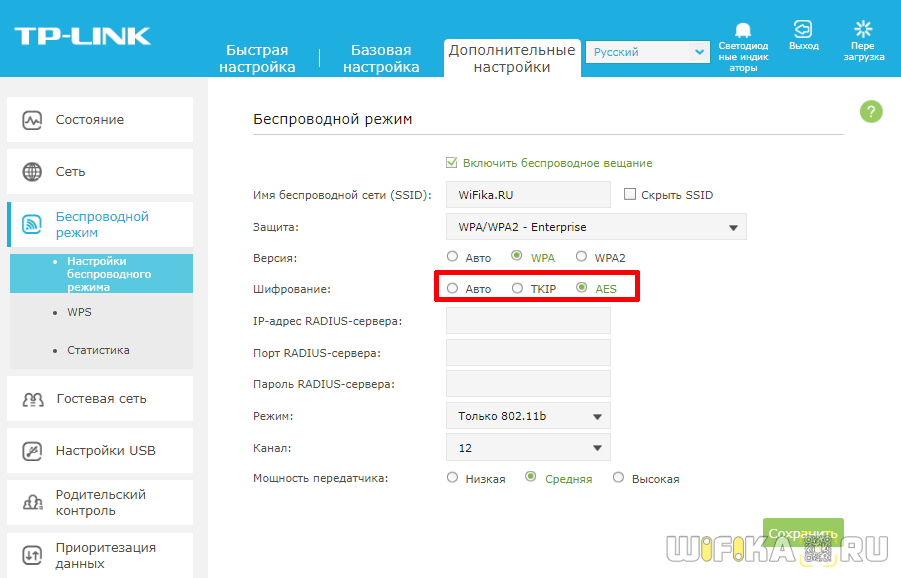 Данные стандарты поддерживают различные алгоритмы шифрования, которые могут передаваться после взаимодействия протоколов TKIP и AES. Тип шифрования aes является более совершенным протоколом, чем tkip, и большинством современных роутеров поддерживается и активно используется.