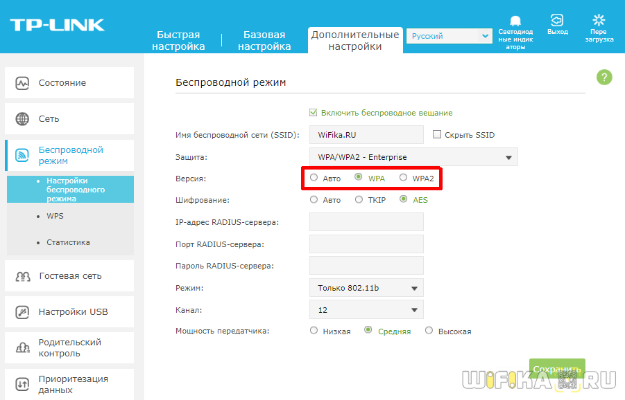Шифрование wpa или wpa2 – предпочтительный тип как для домашнего использования, так и для корпоративного. Последний дает возможность применения двух режимов аутентификации: проверка паролей для доступа определенных пользователей к общей сети осуществляется, в зависимости от заданных настроек, по режиму PSK или Enterprise.