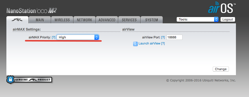 Переходим на первую вкладку и в поле airMAX Priority и выставляем High.