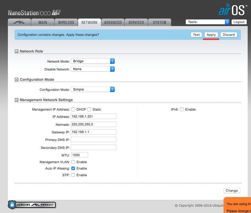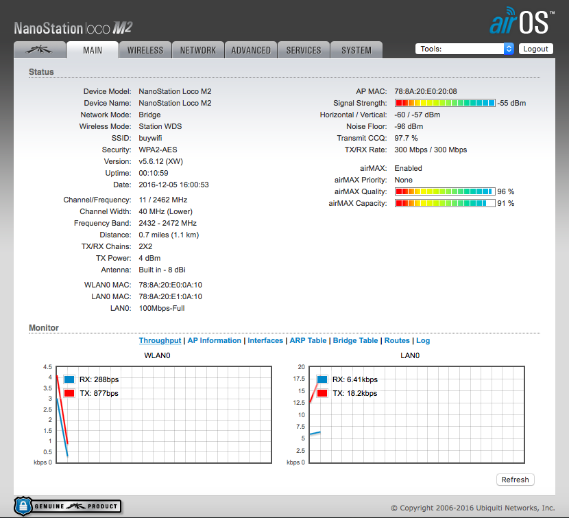 На этом настройка моста завершена. Мы рекомендуем так же всегда обновлять прошивки до последней версий. Как обновить прошивку Ubiquiti можно прочитать в нашей статье .