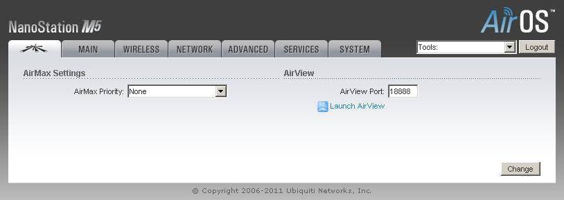 - Перед началом описания настроек необходимо обновить прошивку до последней версии 5.3.3, которая по сравнению с предыдущими, была значительно доработана. Стоит отметить, что Ubiquiti Networks решила вынести в отдельный раздел настройку своей фирменной технологии AirMax, а также встроенный спектроанализатор AirView.